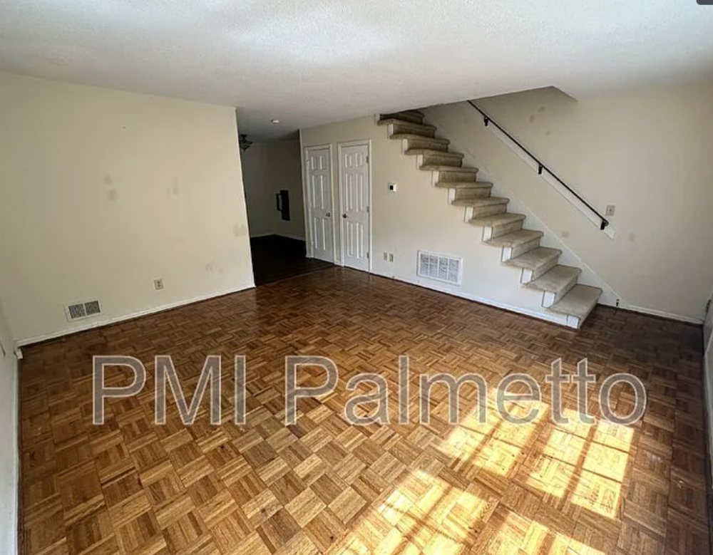Two-bedroom, one and a half bath duplex with parquet flooring in the living room