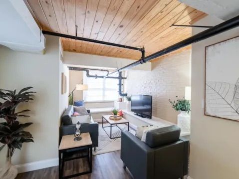 The apartments are architecturally unique, boasting high, wooden vaulted ceilings, brick walls, lofts, large arched windows and stylish exposed antique piping.