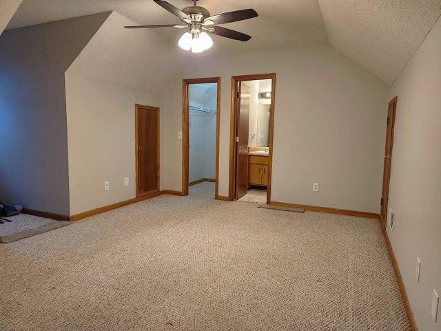 The upstairs bedroom features a walk-in closet. Each bedroom has a connected bathroom. Plenty of storage space all around (closets, 3 attics, shed, etc.)