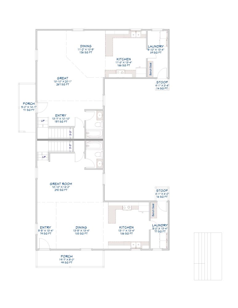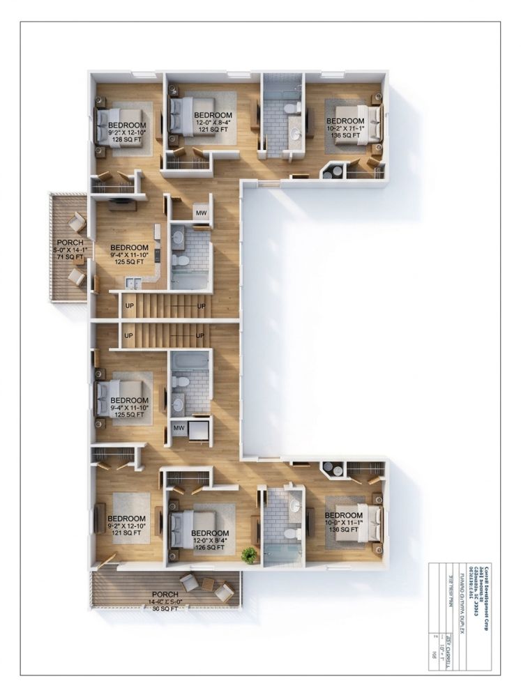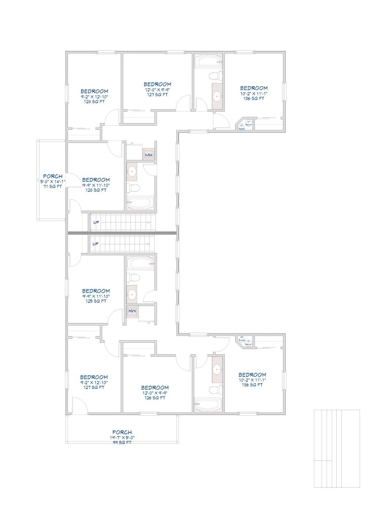 Comfortable second-floor layout with four bedrooms and three full bathrooms on each side!
