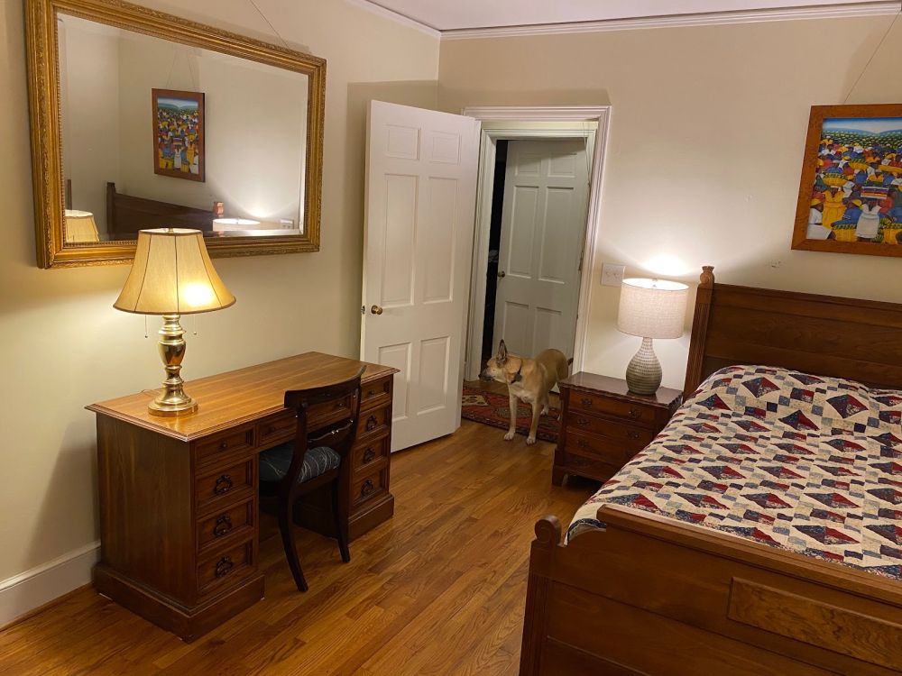 --rooms furnished with bed, nightstand, dresser, desk, and lamp
